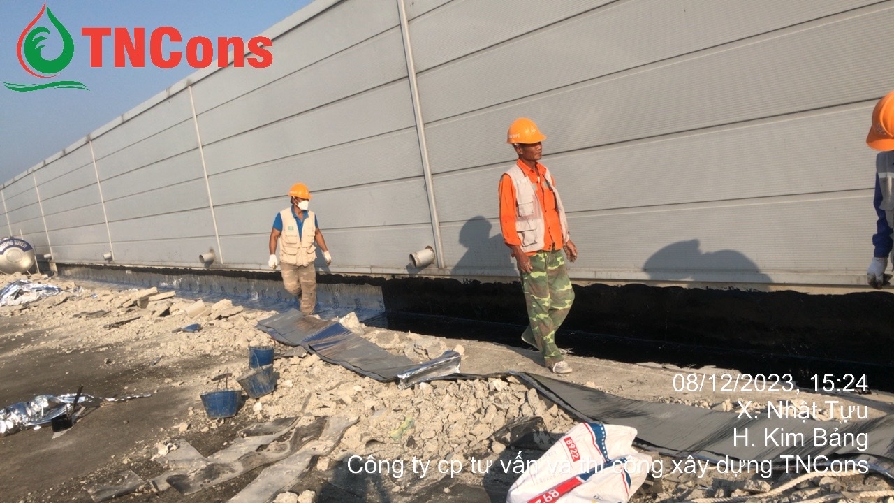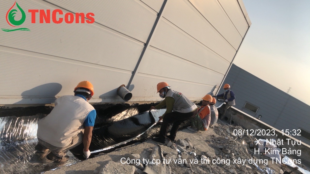 Chống thấm màng bitum là biện pháp mà TNCONS đã sử dụng trong dự án tại Nhà máy Sông Hồng Việt. Đây là một trong những dự án quy mô lớn tọa lạc tại Khu công nghiệp Đồng Văn IV, xã Đại Cương, huyện Kim Bảng, tỉnh Hà Nam. Với yêu cầu cao về độ bền kết cấu và khả năng chống thấm lâu dài, TNCONS đã được tin tưởng giao thực hiện hạng mục thi công chống thấm mái bê tông cho khối văn phòng của nhà máy.